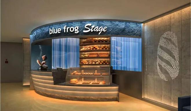 近日,蓝蛙在北京国贸店开设了全国首家Bakery门店,将原有酒水吧改造为烘焙产品橱窗。
